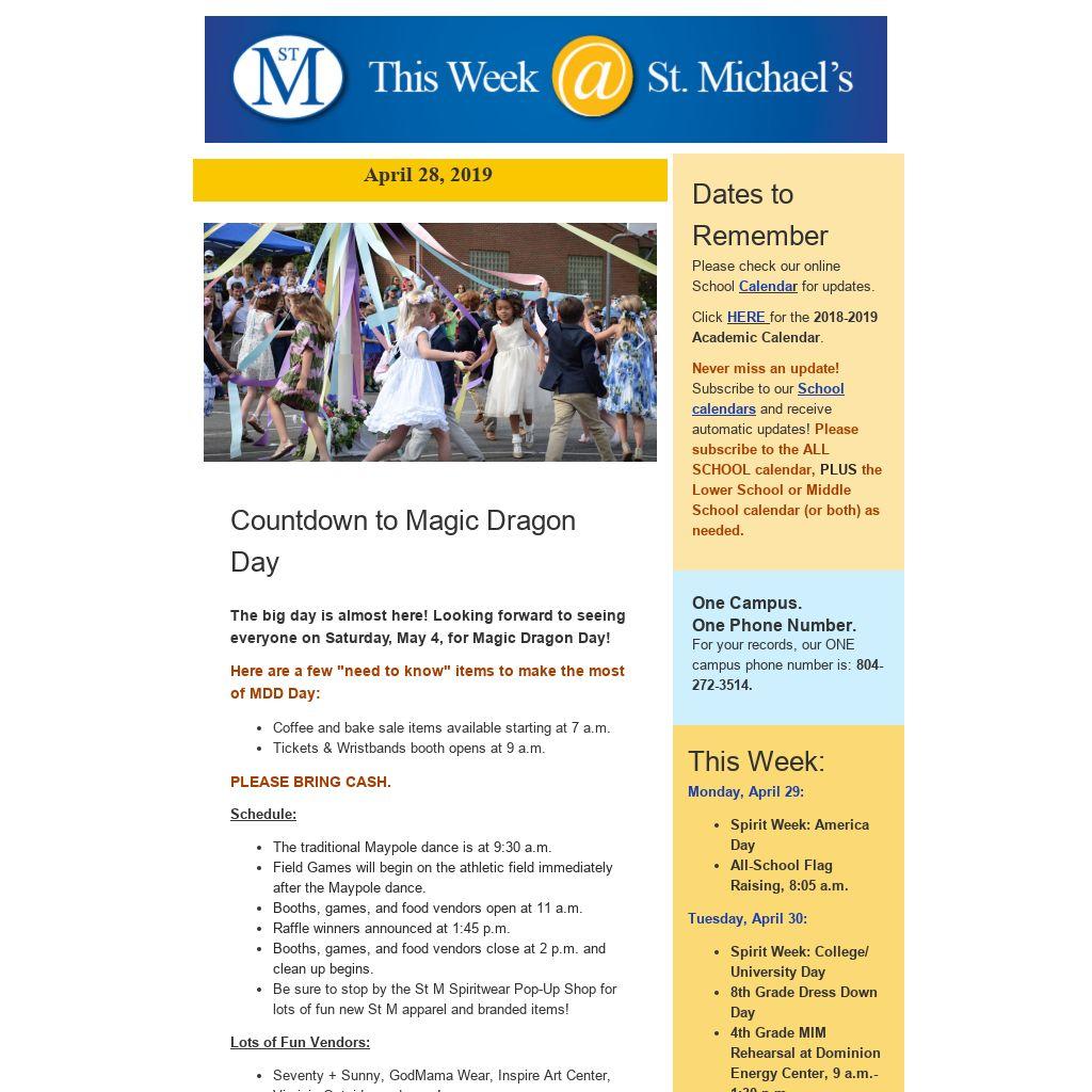 - Saturday, May 4: Magic Dragon Day! Wear your MDD T-Shirt!