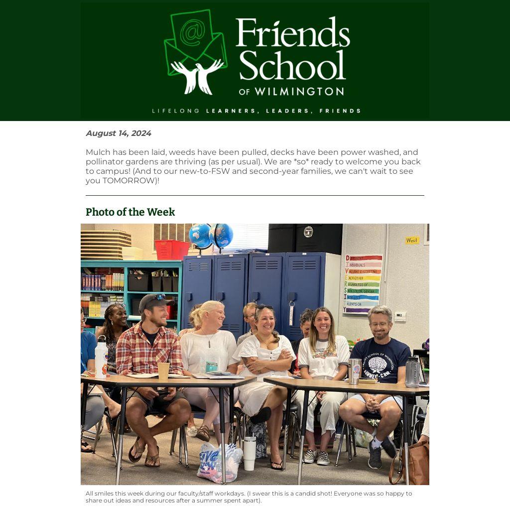 Mulch has been laid, weeds have been pulled, decks have been power washed, and pollinator gardens are thriving (as per usual). We are *so* ready to welcome you back to campus! (And to our new-to-FSW and second-year families, we can't wait to see you TOMORROW)!