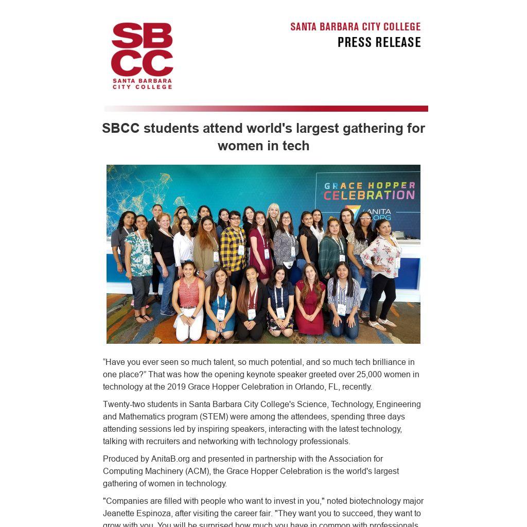 Twenty-two students in Santa Barbara City College's Science, Technology, Engineering and Mathematics program (STEM) were among the attendees, spending three days attending sessions led by inspiring speakers, interacting with the latest technology, talking with recruiters and networking with technology professionals.