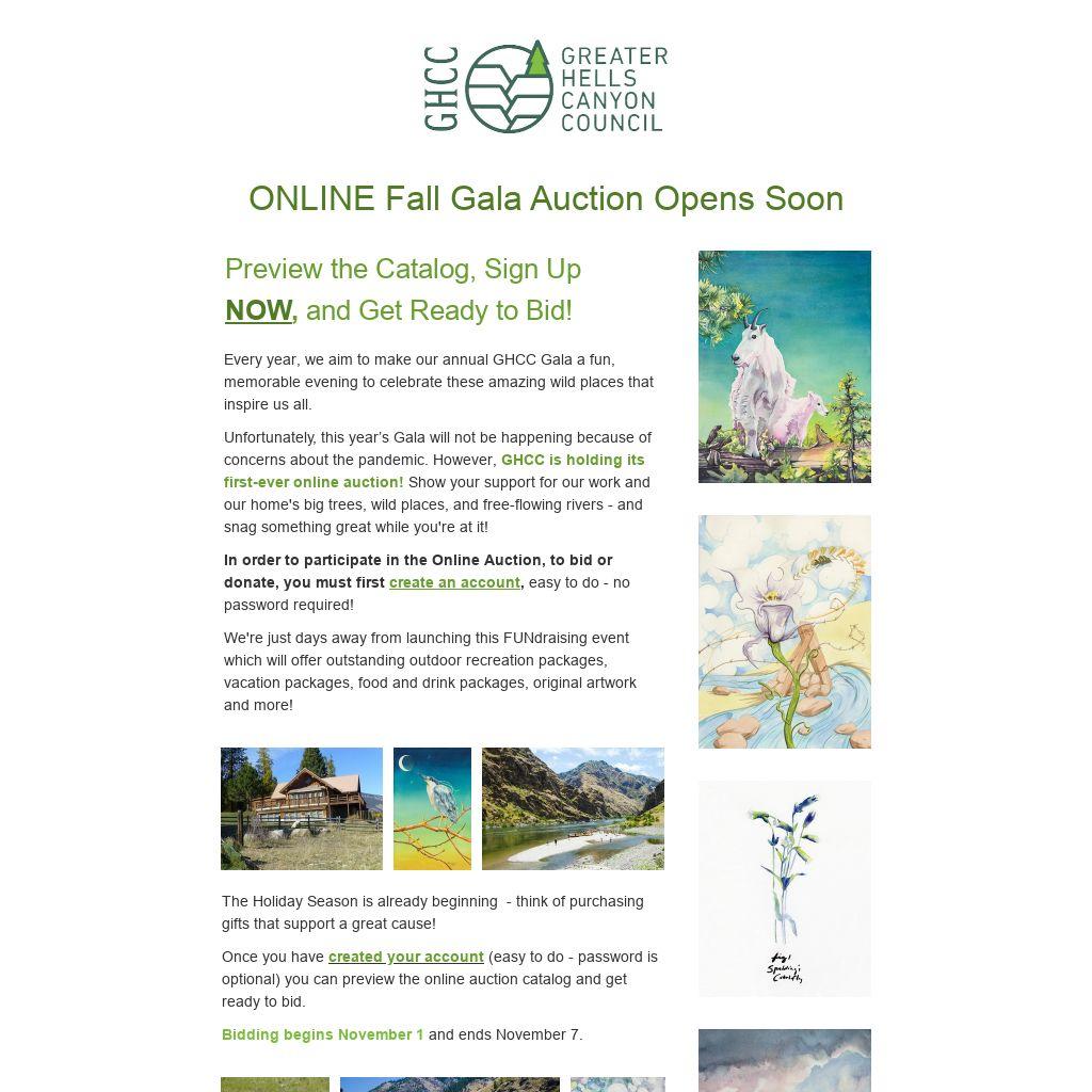 Unfortunately, this year’s Gala will not be happening because of concerns about the pandemic. However, GHCC is holding its first-ever online auction! Show your support for our work and our home's big trees, wild places, and free-flowing rivers - and snag something great while you're at it!