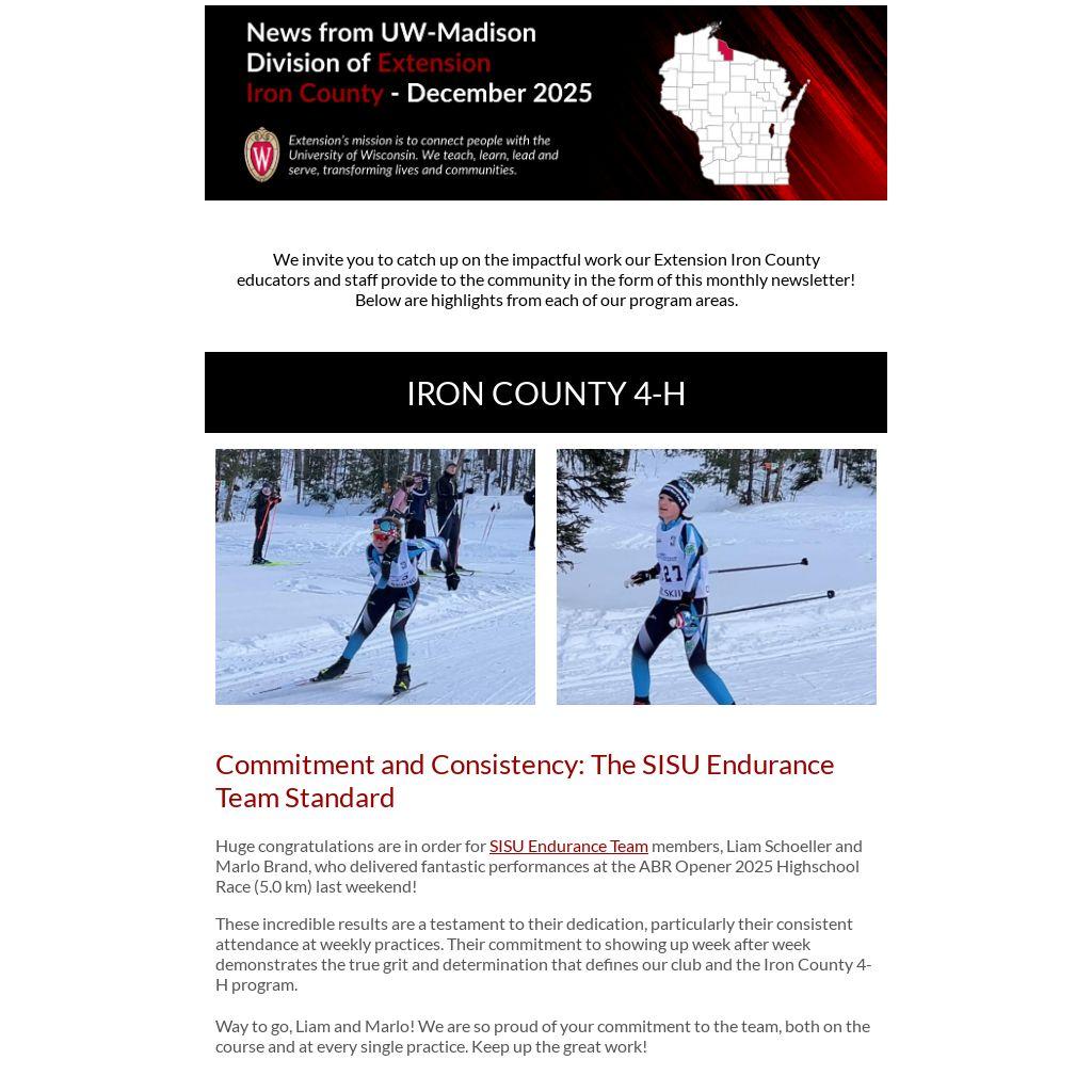 UW-Madison Division of Extension provides valuable programs and resources to all Wisconsin residents, not just those in Iron County! Explore statewide opportunities that can support your family, business, farm, or community, no matter where you are in the Badger State. This month, we are highlighting: