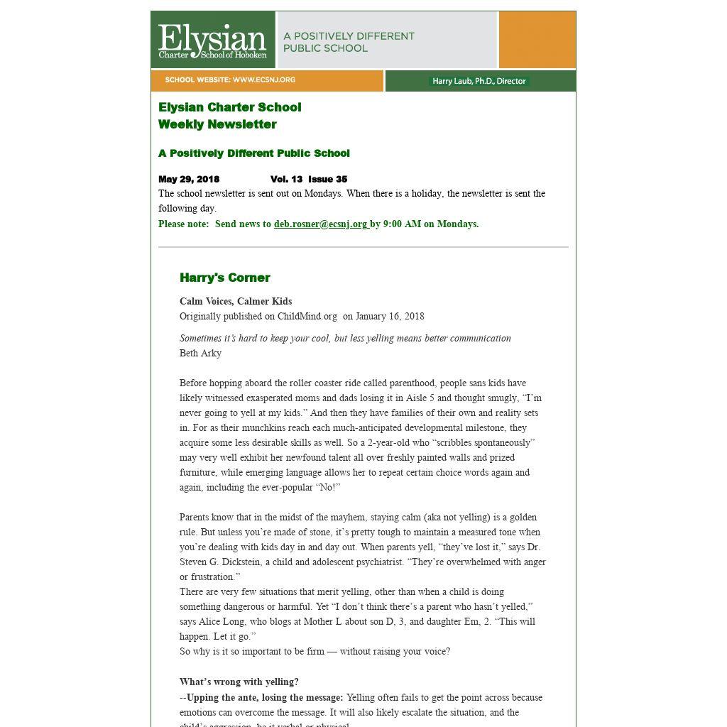 All families using the Elysian Care Program, should be advised that all payments for 3 days a week & 5 days a week programming is due by June 7th for June care packages. All hourly accounts will be billed weekly, until the end of the year.