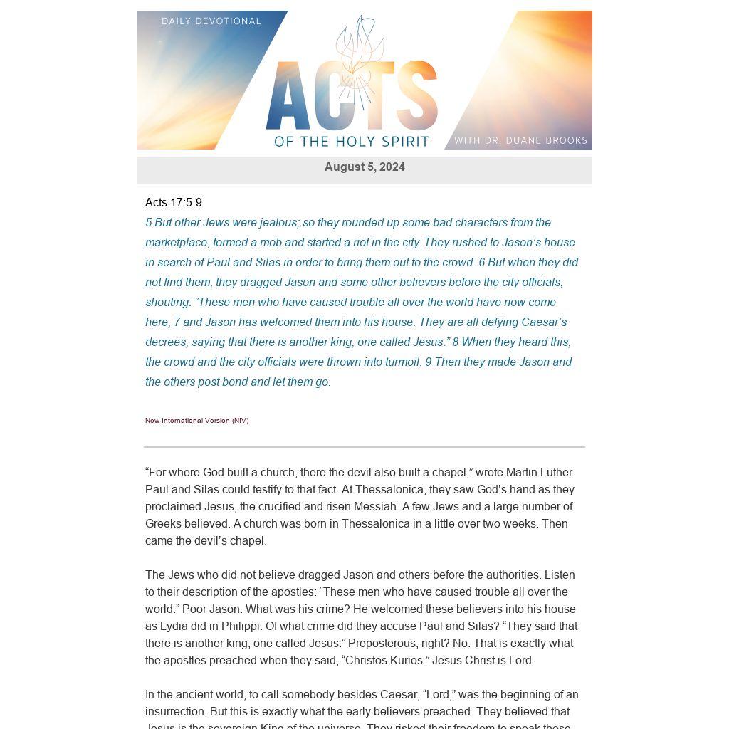 “For where God built a church, there the devil also built a chapel,” wrote Martin Luther. Paul and Silas could testify to that fact. At Thessalonica, they saw God’s hand as they proclaimed Jesus, the crucified and risen Messiah. A few Jews and a large number of Greeks believed. A church was born in Thessalonica in a little over two weeks. Then came the devil’s chapel.