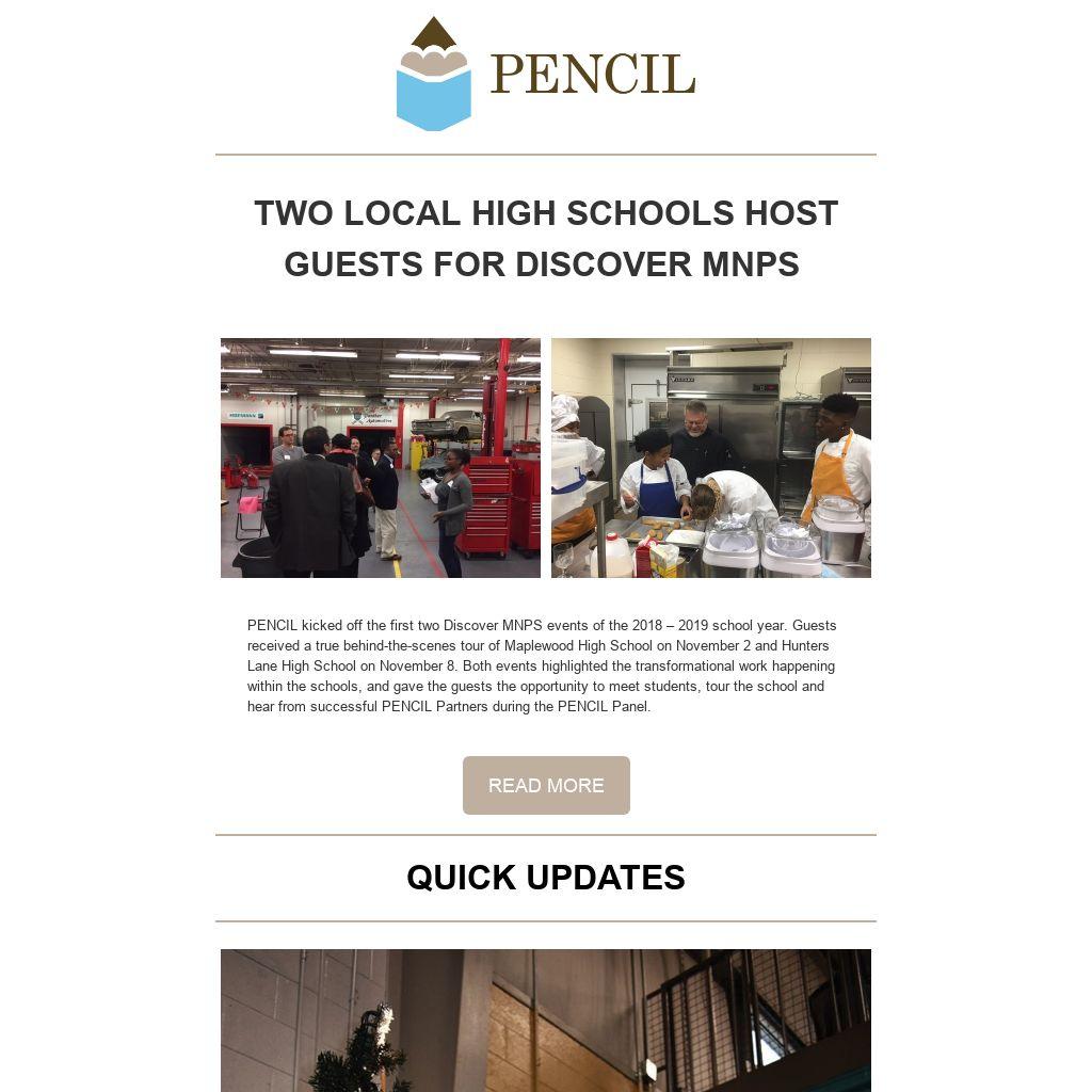 PENCIL kicked off the first two Discover MNPS events of the 2018 – 2019 school year. Guests received a true behind-the-scenes tour of Maplewood High School on November 2 and Hunters Lane High School on November 8. Both events highlighted the transformational work happening within the schools, and gave the guests the opportunity to meet students, tour the school and hear from successful PENCIL Partners during the PENCIL Panel.