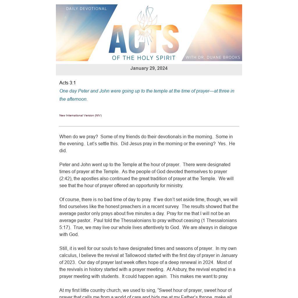 Still, it is well for our souls to have designated times and seasons of prayer. In my own calculus, I believe the revival at Tallowood started with the first day of prayer in January of 2023. Our day of prayer last week offers hope of a deep renewal in 2024. Most of the revivals in history started with a prayer meeting. At Asbury, the revival erupted in a prayer meeting with students. It could happen again. This makes me want to pray.