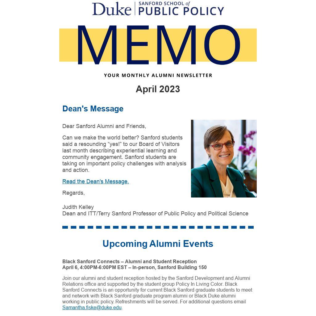 Join our alumni and student reception hosted by the Sanford Development and Alumni Relations office and supported by the student group Policy In Living Color. Black Sanford Connects is an opportunity for current Black Sanford graduate students to meet and network with Black Sanford graduate program alumni or Black Duke alumni working in public policy. Refreshments will be served. For additional questions email Samantha.fiske@duke.edu.