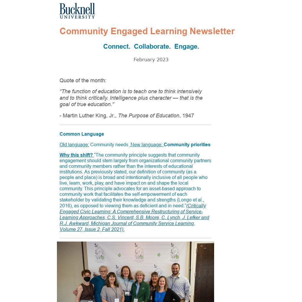 Why this shift? “The community principle suggests that community engagement should stem largely from organizational community partners and community members rather than the interests of educational institutions. As previously stated, our definition of community (as a people and place) is broad and intentionally inclusive of all people who live, learn, work, play, and have impact on and shape the local community. This principle advocates for an asset-based approach to community work that facilitates the self-empowerment of each stakeholder by validating their knowledge and strengths (Longo et al., 2016), as opposed to viewing them as deficient and in need.”(Critically Engaged Civic Learning: A Comprehensive Restructuring of Service-Learning Approaches, C.S. Vincent, S.B. Moore, C. Lynch, J. Lefker and R.J. Awkward, Michigan Journal of Community Service Learning, Volume 27, Issue 2, Fall 2021).