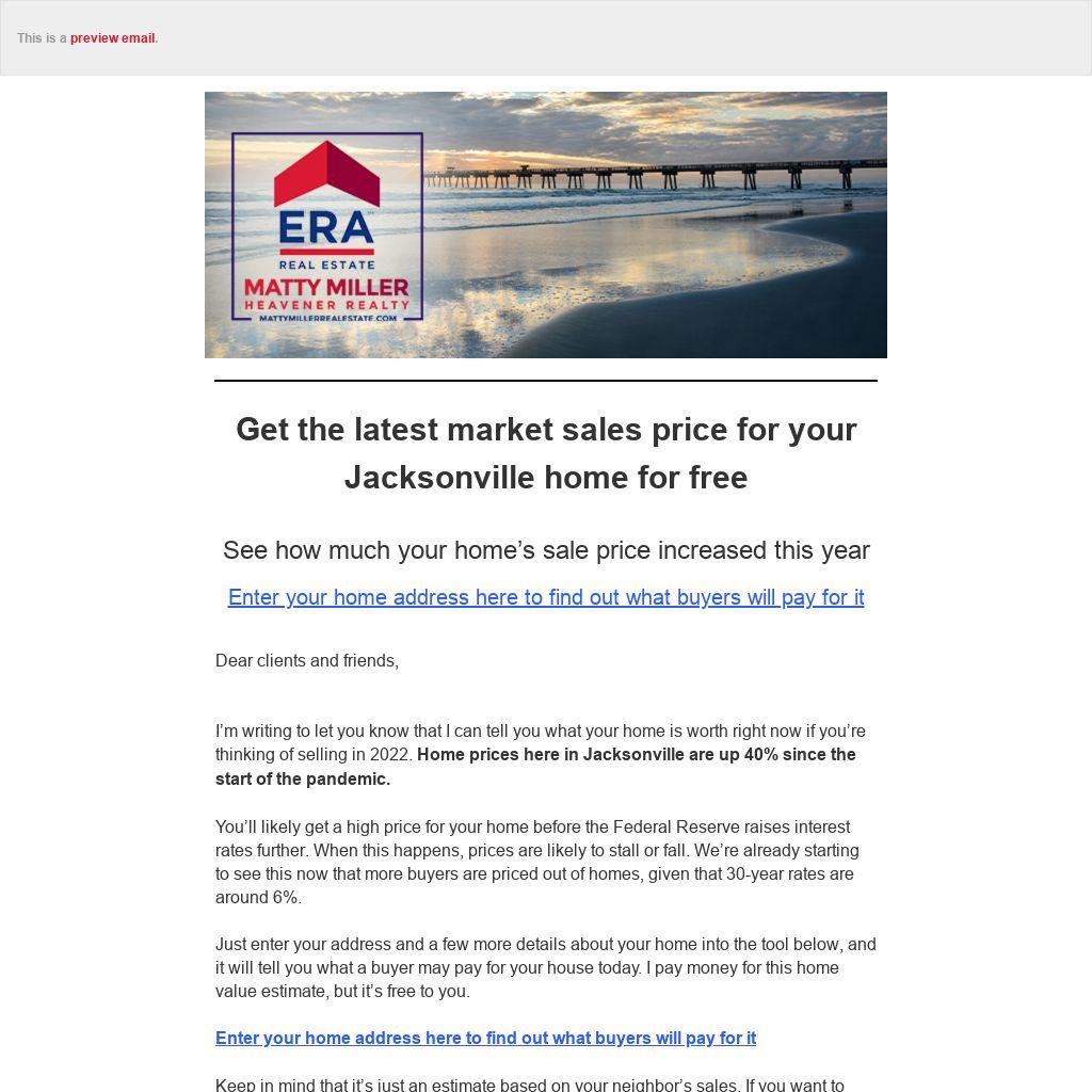 I’m writing to let you know that I can tell you what your home is worth right now if you’re thinking of selling in 2022. Home prices here in Jacksonville are up 40% since the start of the pandemic.