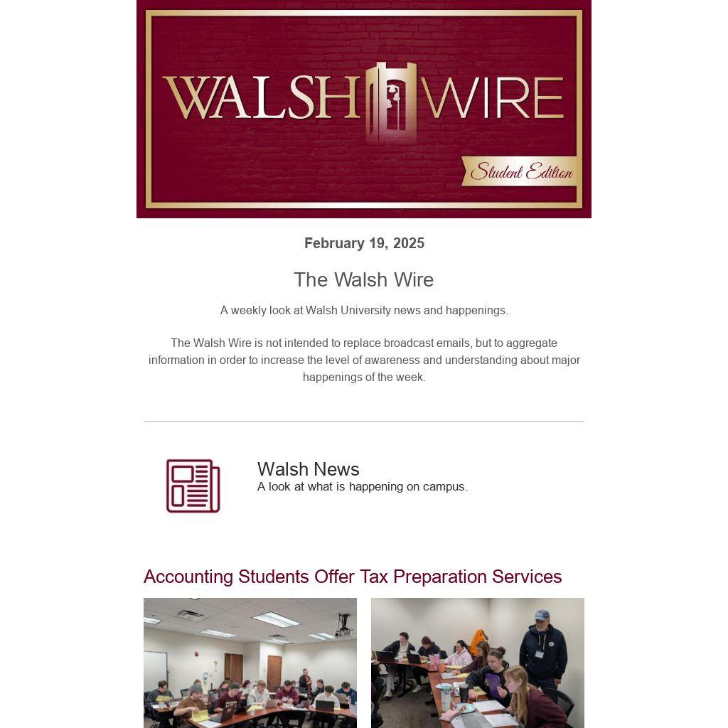 The Walsh Wire is not intended to replace broadcast emails, but to aggregate information in order to increase the level of awareness and understanding about major happenings of the week.