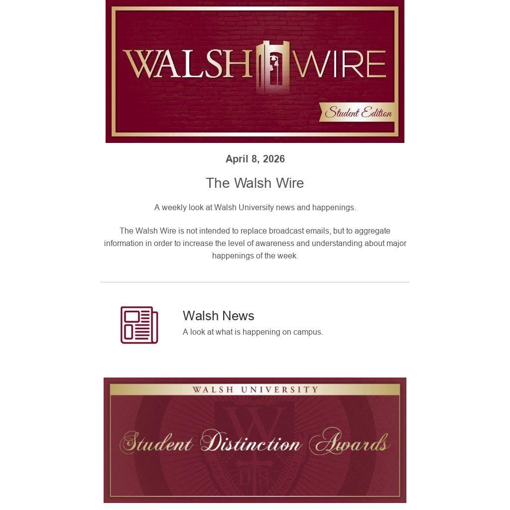 The Walsh Wire is not intended to replace broadcast emails, but to aggregate information in order to increase the level of awareness and understanding about major happenings of the week.