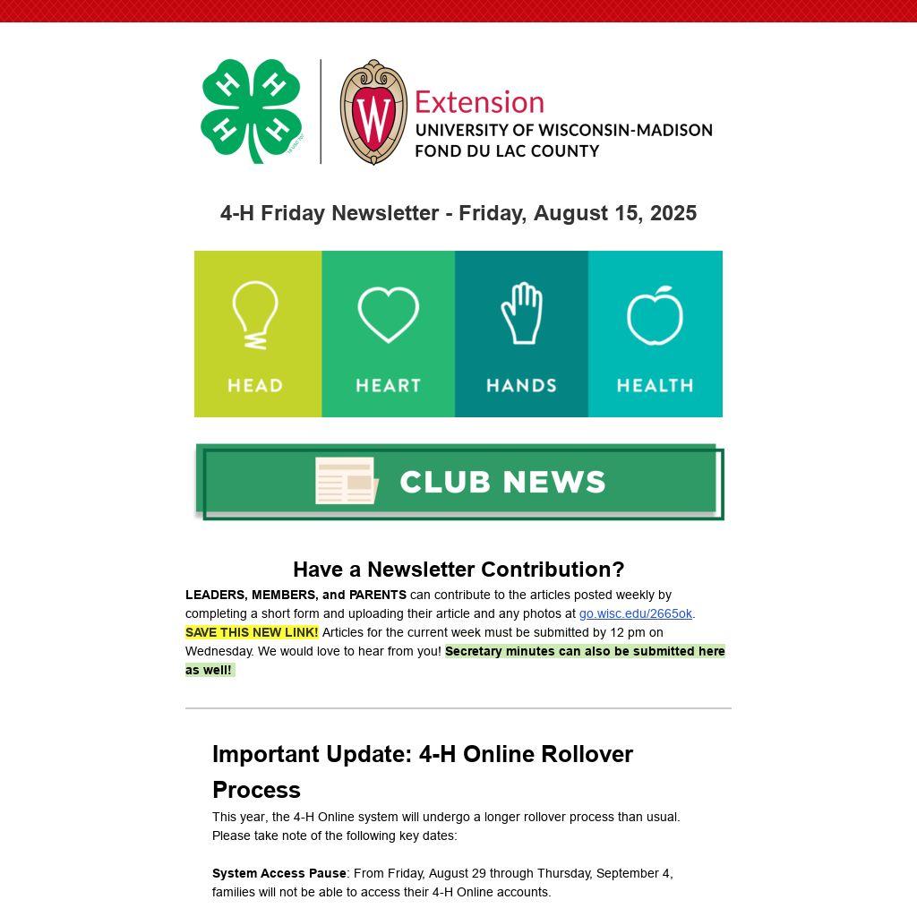 Have a Newsletter Contribution?LEADERS, MEMBERS, and PARENTS can contribute to the articles posted weekly by completing a short form and uploading their article and any photos at go.wisc.edu/2665ok.