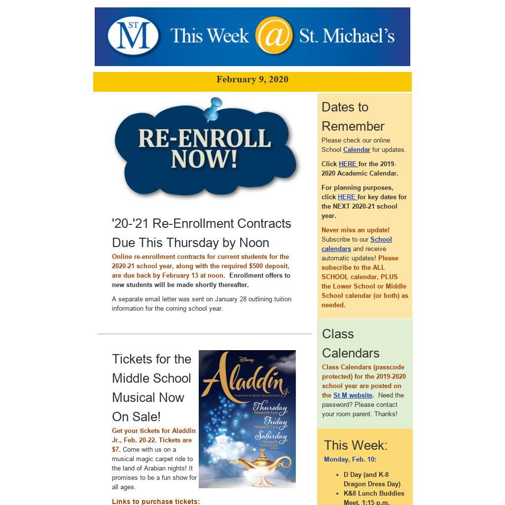 Current and past issues of "This Week at St. Michael's" are now archived on our website under " News and Events," as well as under " Community."