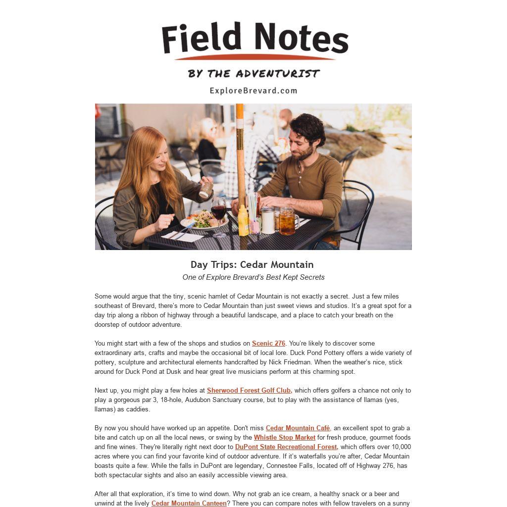 Cedar Mountain Canteen? There you can compare notes with fellow travelers on a sunny patio as you plan your next Transylvania County adventure.