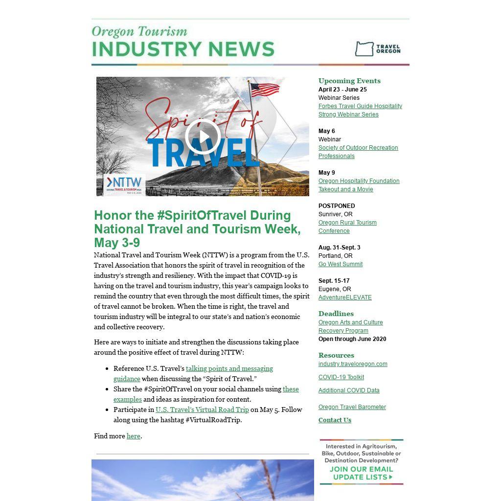 On April 29, Travel Oregon's CEO, Todd Davidson, alongside Alana Hughson, Managing Director of Oregon Destination Association and Jason Brandt, President & CEO, Oregon Restaurant & Lodging Association, hosted an in-depth discussion to inform the industry of the efforts we’re making to address the needs of travelers, partners, stakeholders and residents in a time when up-to-date information is crucial.