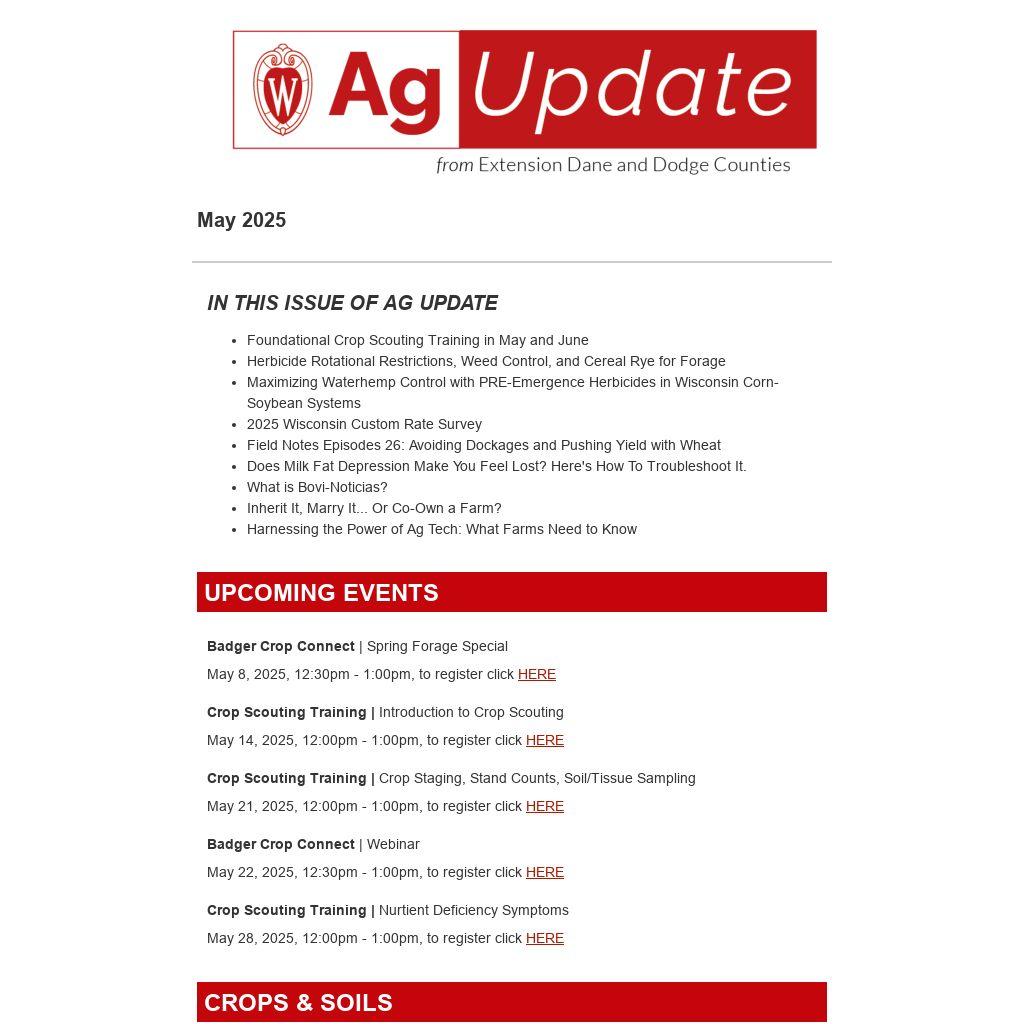 Badger Crop Connect | Webinar May 22, 2025, 12:30pm - 1:00pm, to register click HERE
