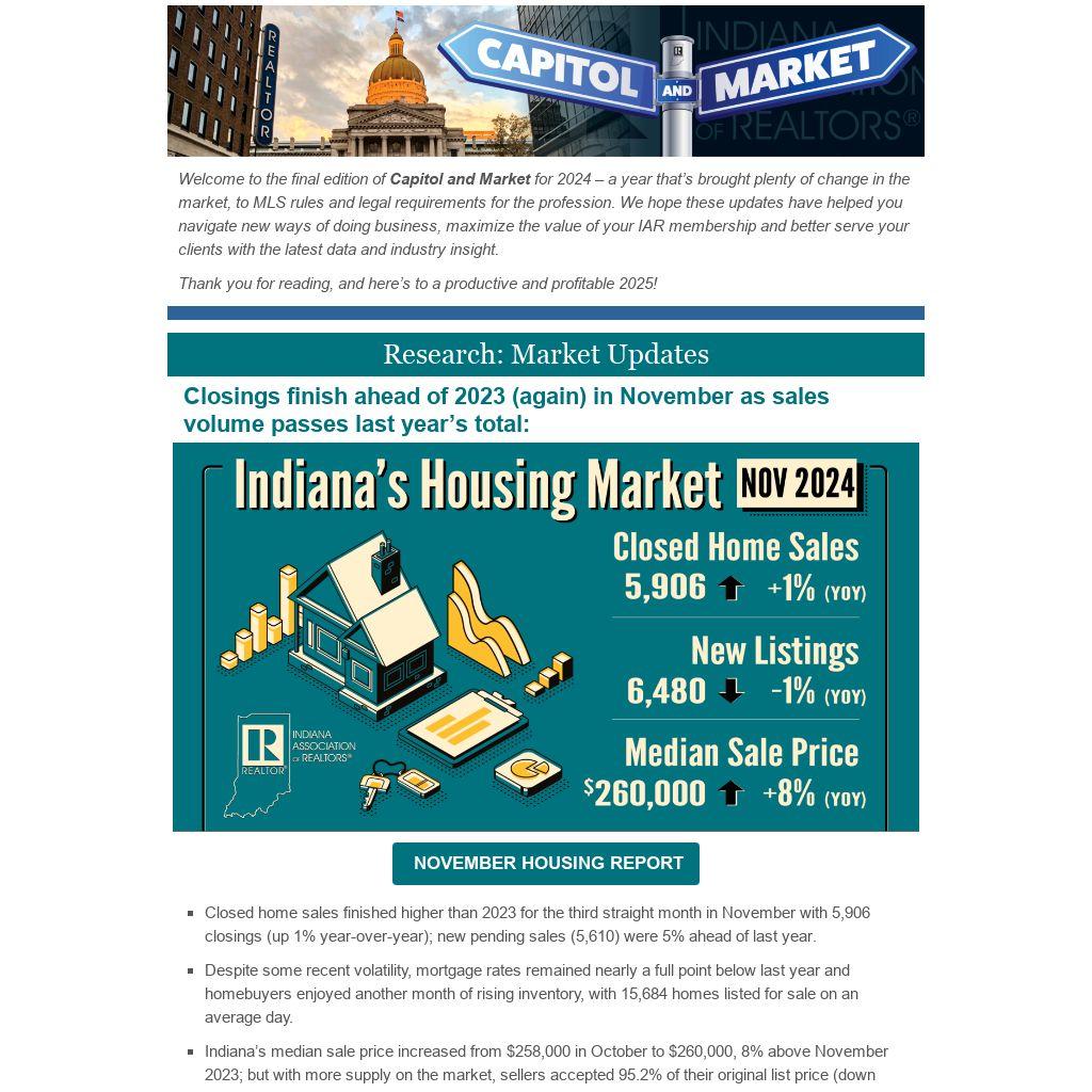 Welcome to the final edition of Capitol and Market for 2024 – a year that’s brought plenty of change in the market, to MLS rules and legal requirements for the profession. We hope these updates have helped you navigate new ways of doing business, maximize the value of your IAR membership and better serve your clients with the latest data and industry insight.