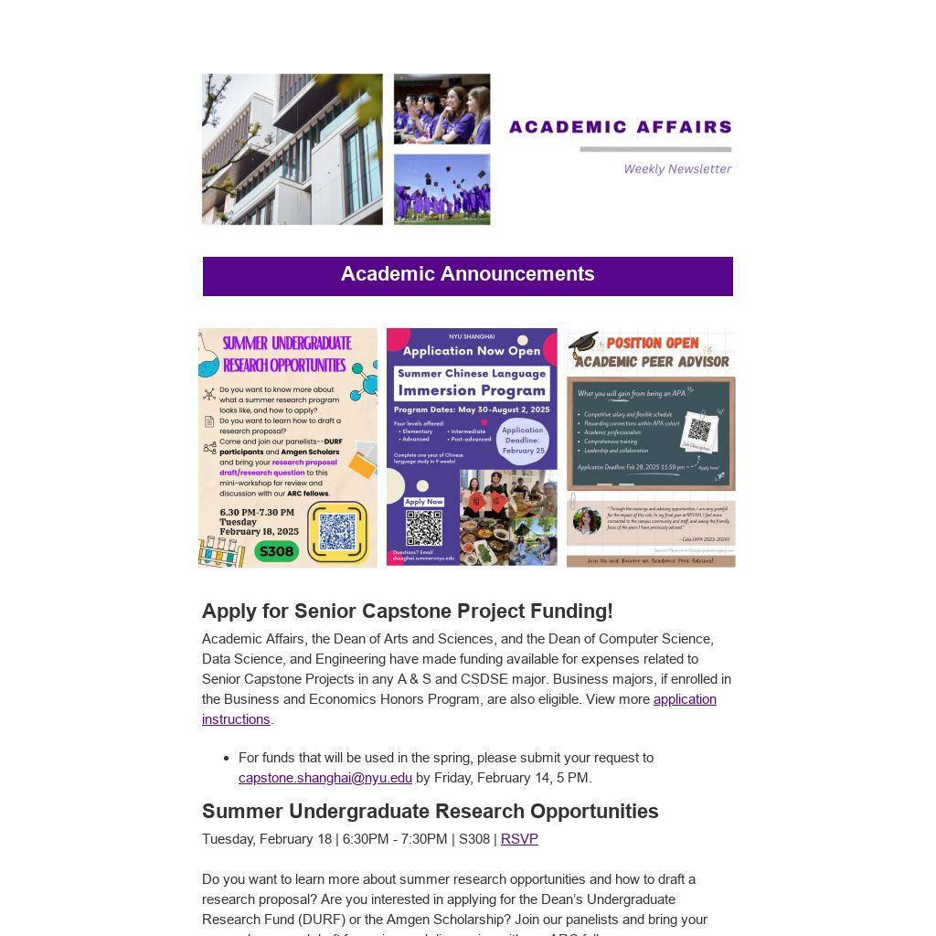 - For funds that will be used in the spring, please submit your request to capstone.shanghai@nyu.edu by Friday, February 14, 5 PM.