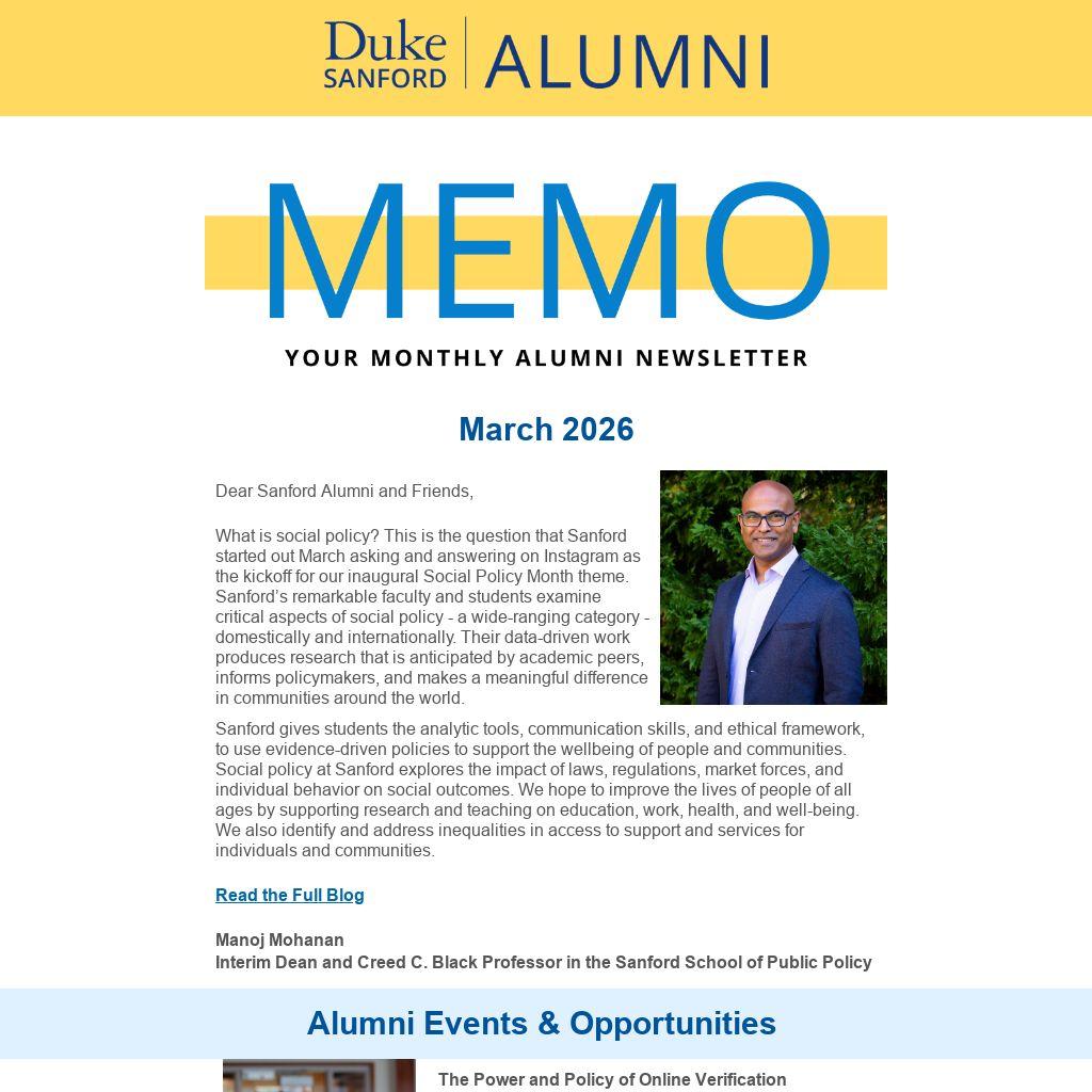 Sanford’s alumni network is a powerful and supportive community, and we are actively mobilizing to provide guidance and resources. If you have job leads, mentorship opportunities, or insights to share, we invite you to extend a helping hand to fellow alumni in transition. We will continue to look for ways to strengthen our network and provide meaningful assistance during this season.