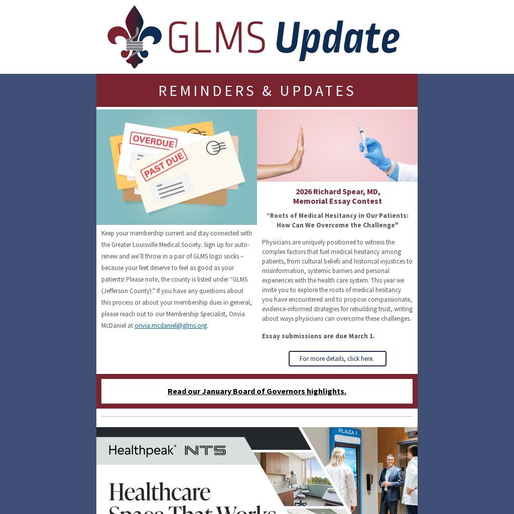 Keep your membership current and stay connected with the Greater Louisville Medical Society. Sign up for auto-renew and we’ll throw in a pair of GLMS logo socks – because your feet deserve to feel as good as your patients! Please note, the county is listed under “GLMS (Jefferson County)." If you have any questions about this process or about your membership dues in general, please reach out to our Membership Specialist, Onvia McDaniel at onvia.mcdaniel@glms.org.
