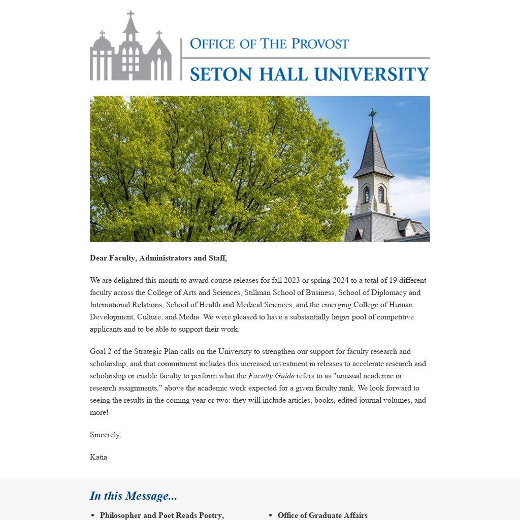 This position will come with teaching release and a competitive stipend. Inquiries and/or nominations and applications, which should consist of a CV and cover letter highlighting qualifying experience and interest, should be sent to Dr. Jonathan Farina (jonathan.farina@shu.edu) by Tuesday, February 21, 2023, and should CC your department chairperson and dean.