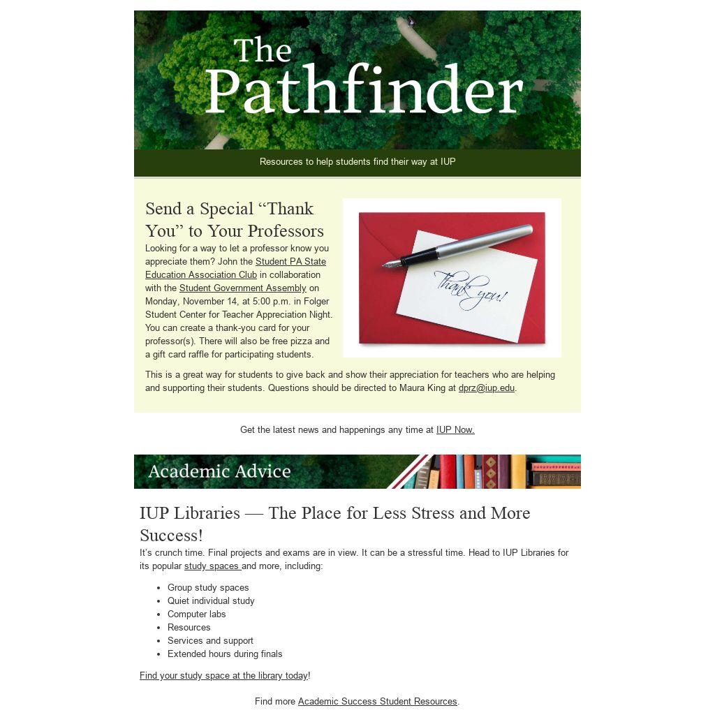 This is a great way for students to give back and show their appreciation for teachers who are helping and supporting their students. Questions should be directed to Maura King at dprz@iup.edu.
