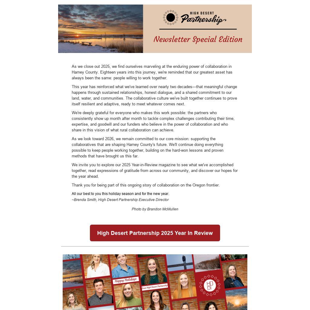 As we look toward 2026, we remain committed to our core mission: supporting the collaboratives that are shaping Harney County's future. We'll continue doing everything possible to keep people working together, building on the hard-won lessons and proven methods that have brought us this far.