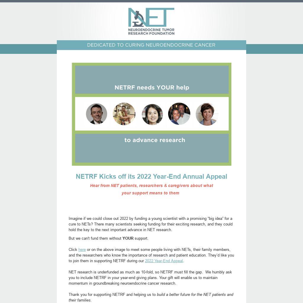 NETRF Kicks off its 2022 Year-End Annual AppealHear from NET patients, researchers & caregivers about what your support means to them