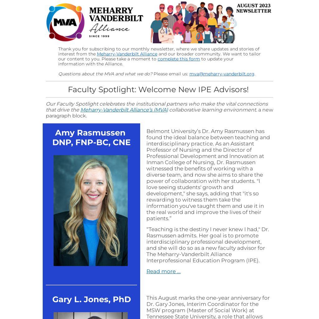 Our Faculty Spotlight celebrates the institutional partners who make the vital connections that drive the Meharry-Vanderbilt Alliance’s (MVA) collaborative learning environment. a new paragraph block.
