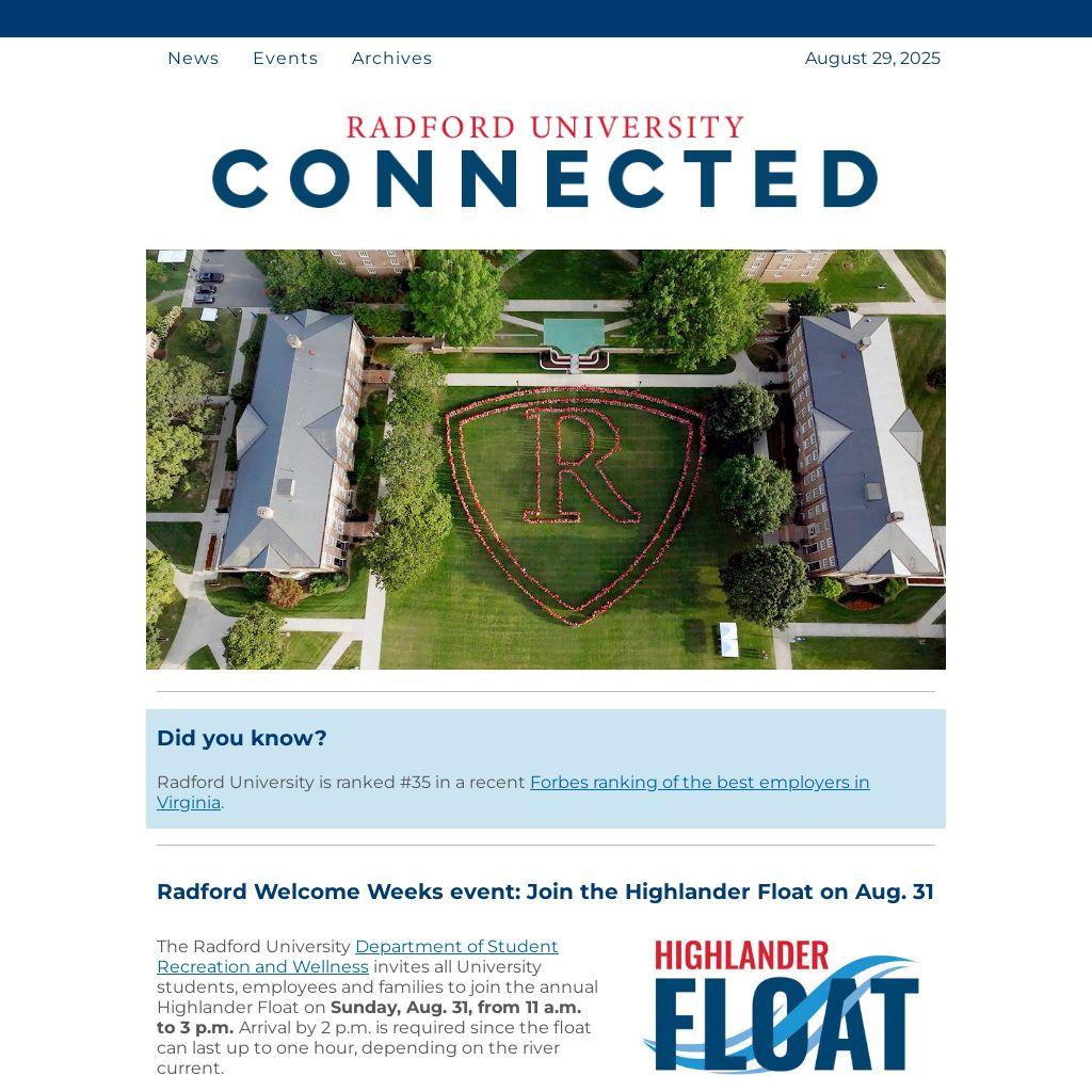 Radford Welcome Weeks event: Join the Highlander Float on Aug. 31 |