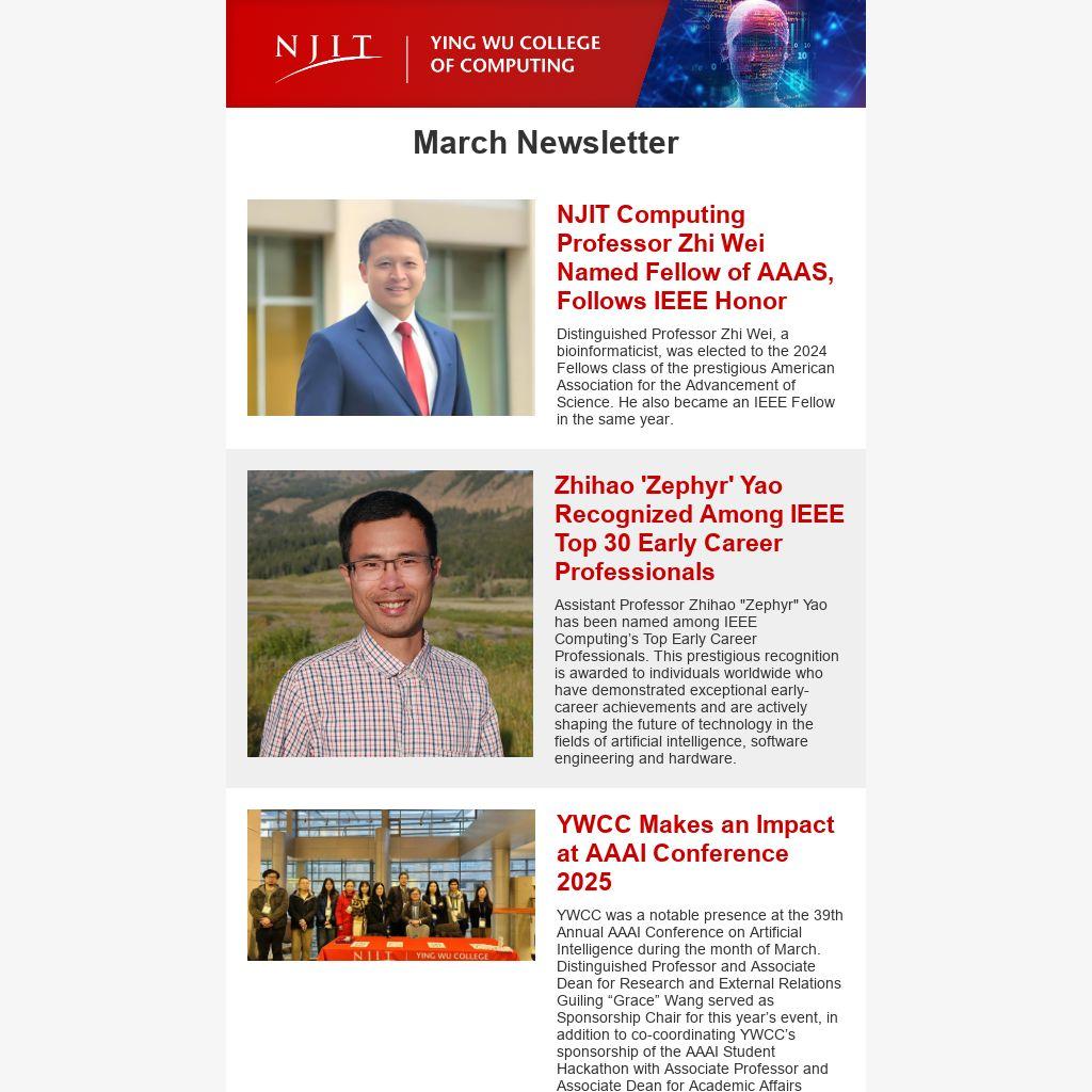 YWCC was a notable presence at the 39th Annual AAAI Conference on Artificial Intelligence during the month of March. Distinguished Professor and Associate Dean for Research and External Relations Guiling “Grace” Wang served as Sponsorship Chair for this year’s event, in addition to co-coordinating YWCC’s sponsorship of the AAAI Student Hackathon with Associate Professor and Associate Dean for Academic Affairs Brook Wu and serving as one of 10 Women Mentors for the women mentoring lunch program.