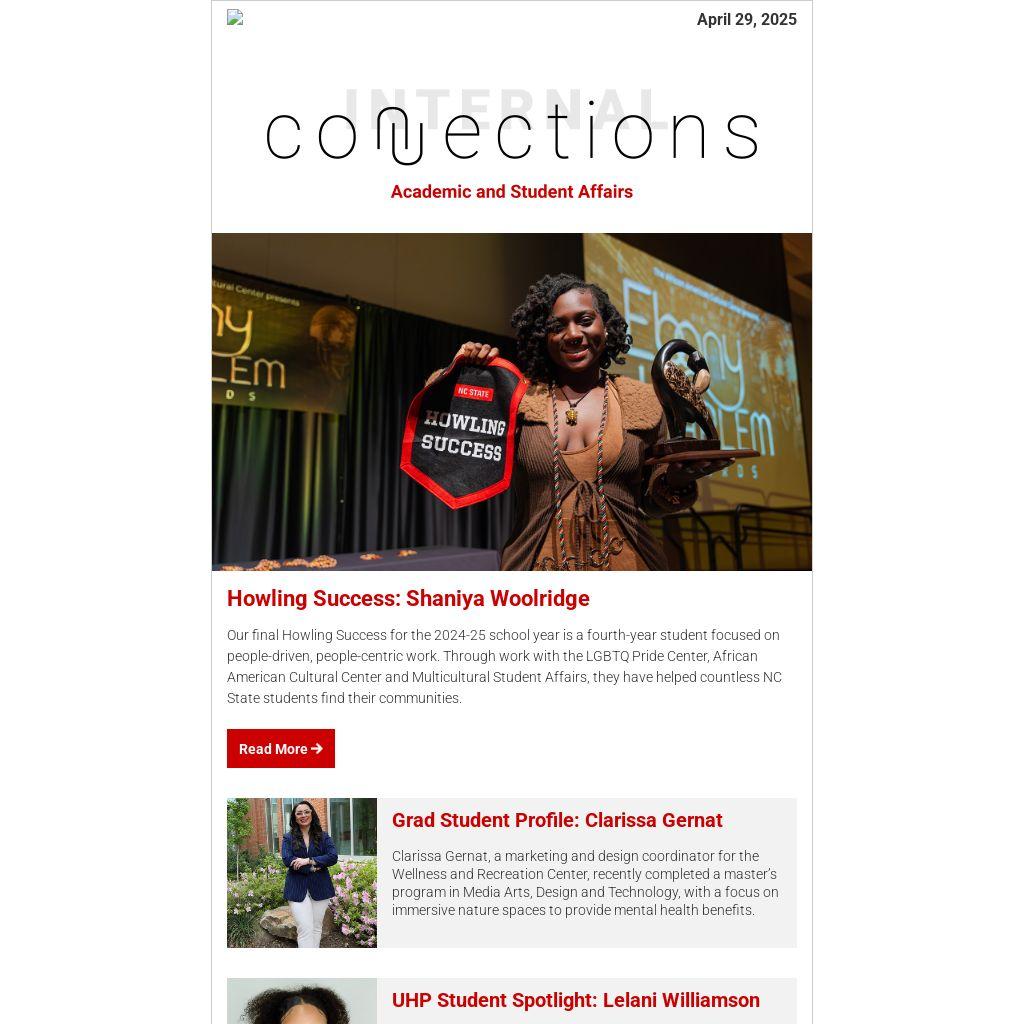 Our final Howling Success for the 2024-25 school year is a fourth-year student focused on people-driven, people-centric work. Through work with the LGBTQ Pride Center, African American Cultural Center and Multicultural Student Affairs, they have helped countless NC State students find their communities.