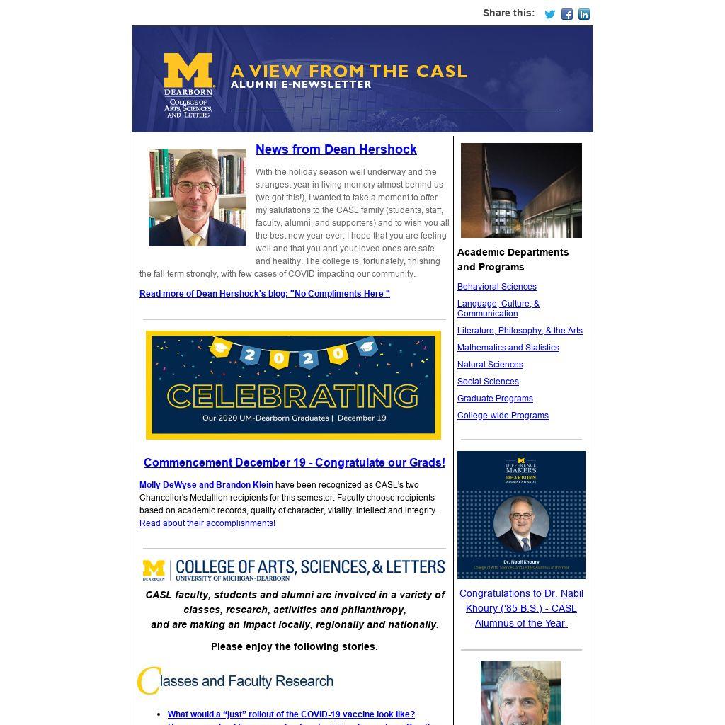 For example, your gifts will make it possible for CASL students to participate in internships and undergraduate research. These experiences will be delivered virtually and remotely until it is safe for students to return to campus or internship sites, and will also prepare students to learn and work in whatever ways the future requires. Thank you for being an everyday hero for CASL students!