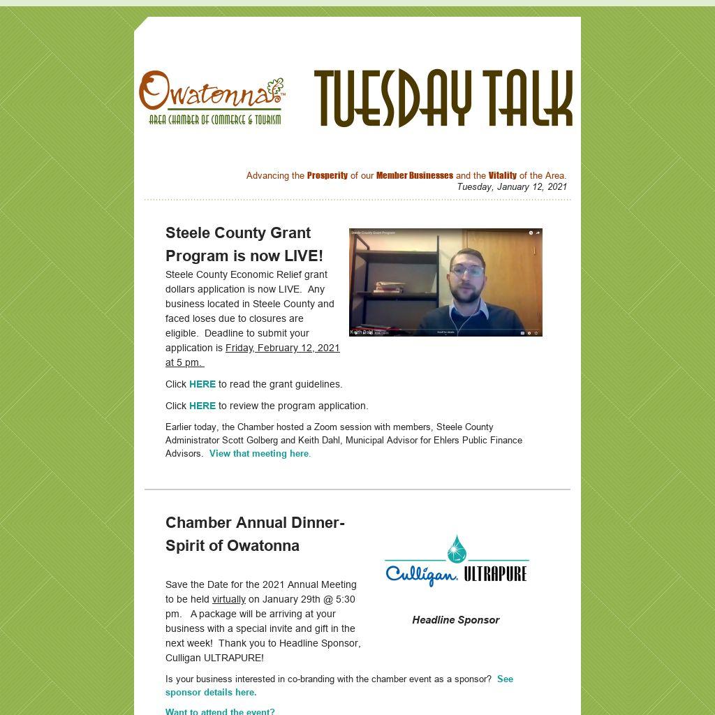 Steele County Economic Relief grant dollars application is now LIVE. Any business located in Steele County and faced loses due to closures are eligible. Deadline to submit your application is Friday, February 12, 2021 at 5 pm.