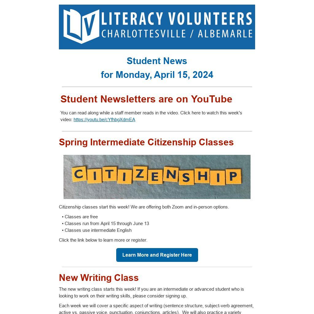 The new writing class starts this week! If you are an intermediate or advanced student who is looking to work on their writing skills, please consider signing up.