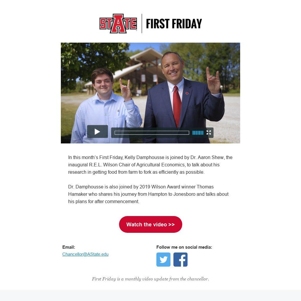 In this month’s First Friday, Kelly Damphousse is joined by Dr. Aaron Shew, the inaugural R.E.L. Wilson Chair of Agricultural Economics, to talk about his research in getting food from farm to fork as efficiently as possible.