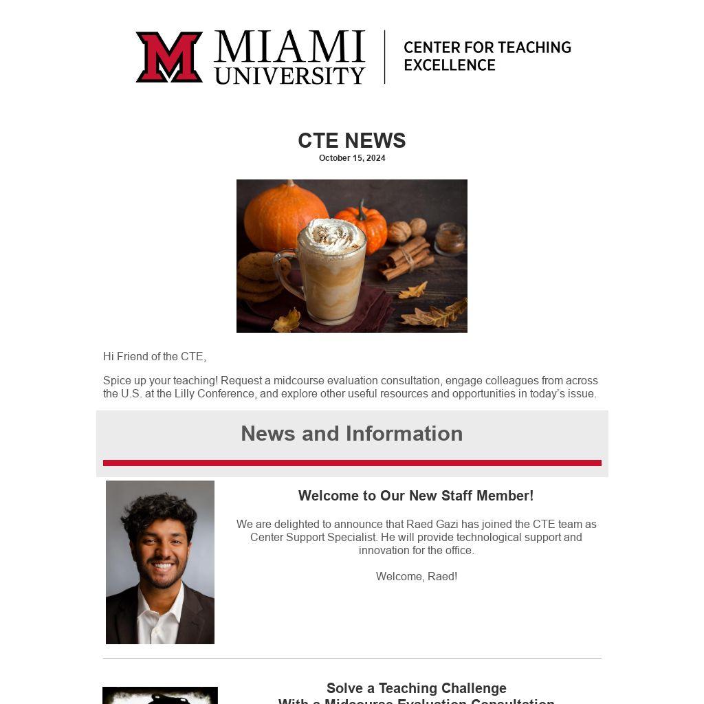 We are delighted to announce that Raed Gazi has joined the CTE team as Center Support Specialist. He will provide technological support and innovation for the office.