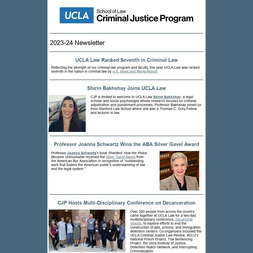 This coming year marks the tenth year since the launch of the UCLA Prison Law and Policy Program led by Professor Sharon Dolovich. UCLA has since become the premier law school in the nation for students committed to advocating for the incarcerated. An anniversary celebration is in the works for Spring 2025.