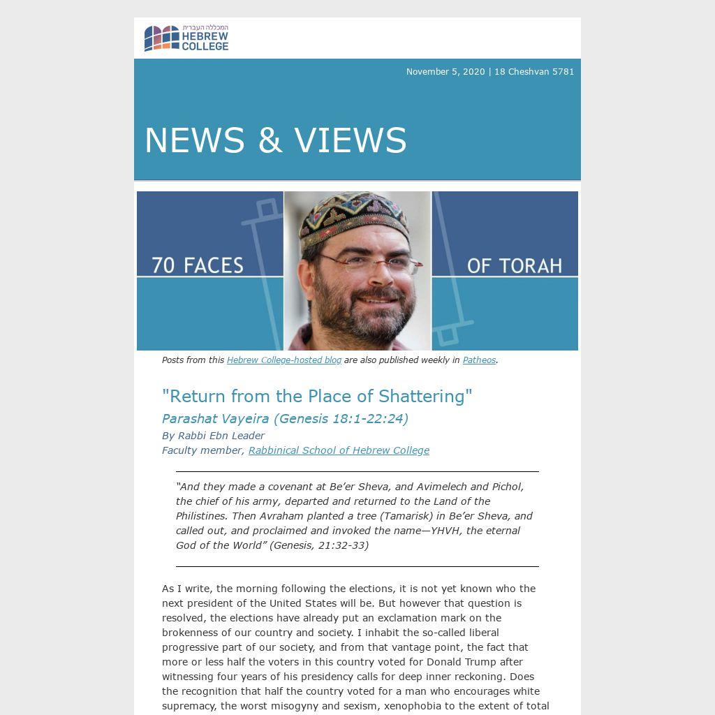 As I write, the morning following the elections, it is not yet known who the next president of the United States will be. But however that question is resolved, the elections have already put an exclamation mark on the brokenness of our country and society. I inhabit the so-called liberal progressive part of our society, and from that vantage point, the fact that more or less half the voters in this country voted for Donald Trump after witnessing four years of his presidency calls for deep inner reckoning. Does the recognition that half the country voted for a man who encourages white supremacy, the worst misogyny and sexism, xenophobia to the extent of total disregard of the humanity of immigrant adult and children and more and more, shatter our social contract beyond repair? Is there anything still to be done with the shards of the trust that made us a nation?