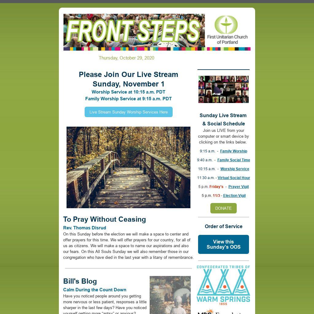 Church Communications: Do you receive messages from the church including this weekly E-News and our Staying Connected emails? To receive church emails send a note to etafuri@firstunitarianportland.org.
