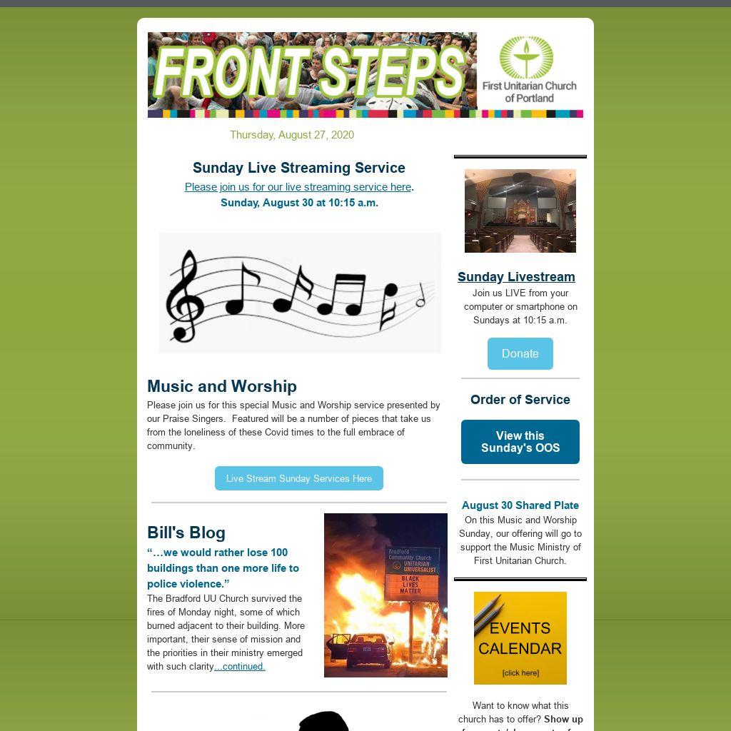 Have a Submission for E-News?If you have a submission you would like published in our weekly Front Steps (E-News), please submit it here with subject line “For E-News.”