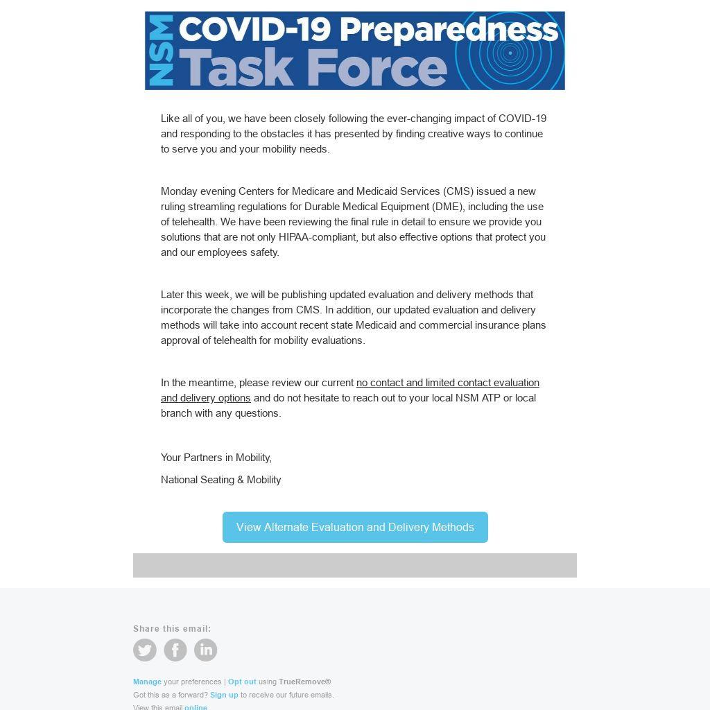 Later this week, we will be publishing updated evaluation and delivery methods that incorporate the changes from CMS. In addition, our updated evaluation and delivery methods will take into account recent state Medicaid and commercial insurance plans approval of telehealth for mobility evaluations.