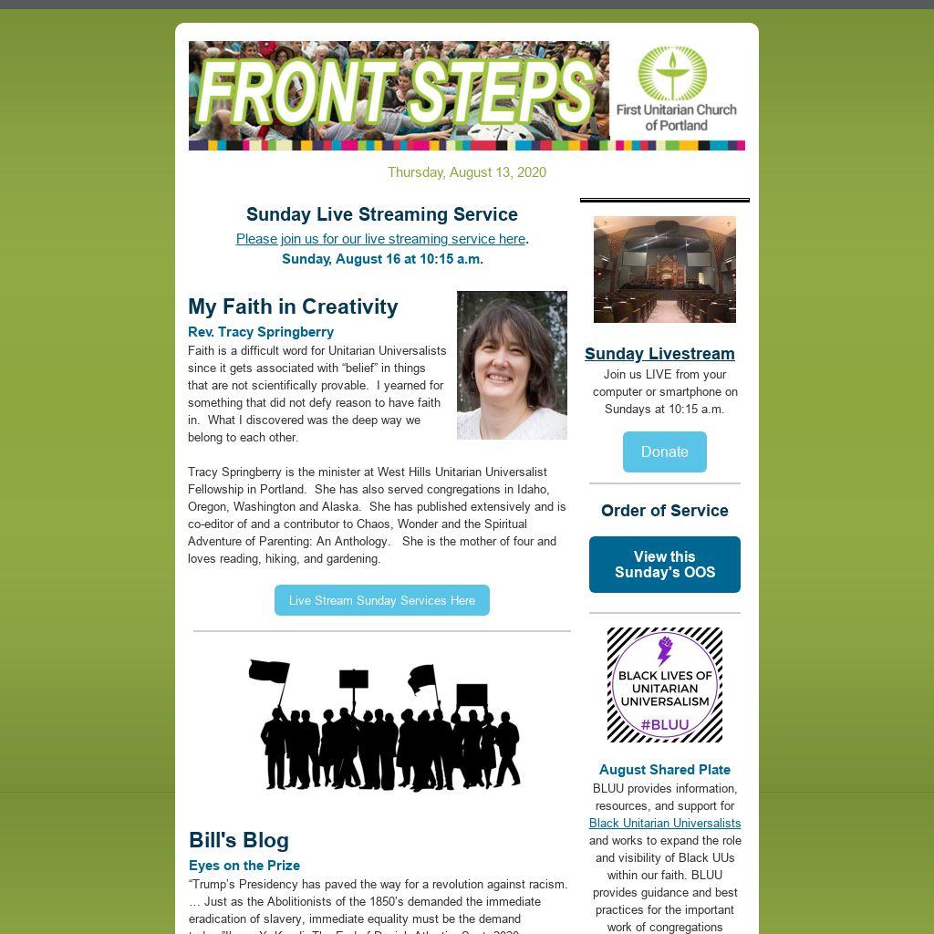 Have a Submission for E-News?If you have a submission you would like published in our weekly Front Steps (E-News), please submit it here with subject line “For E-News.”