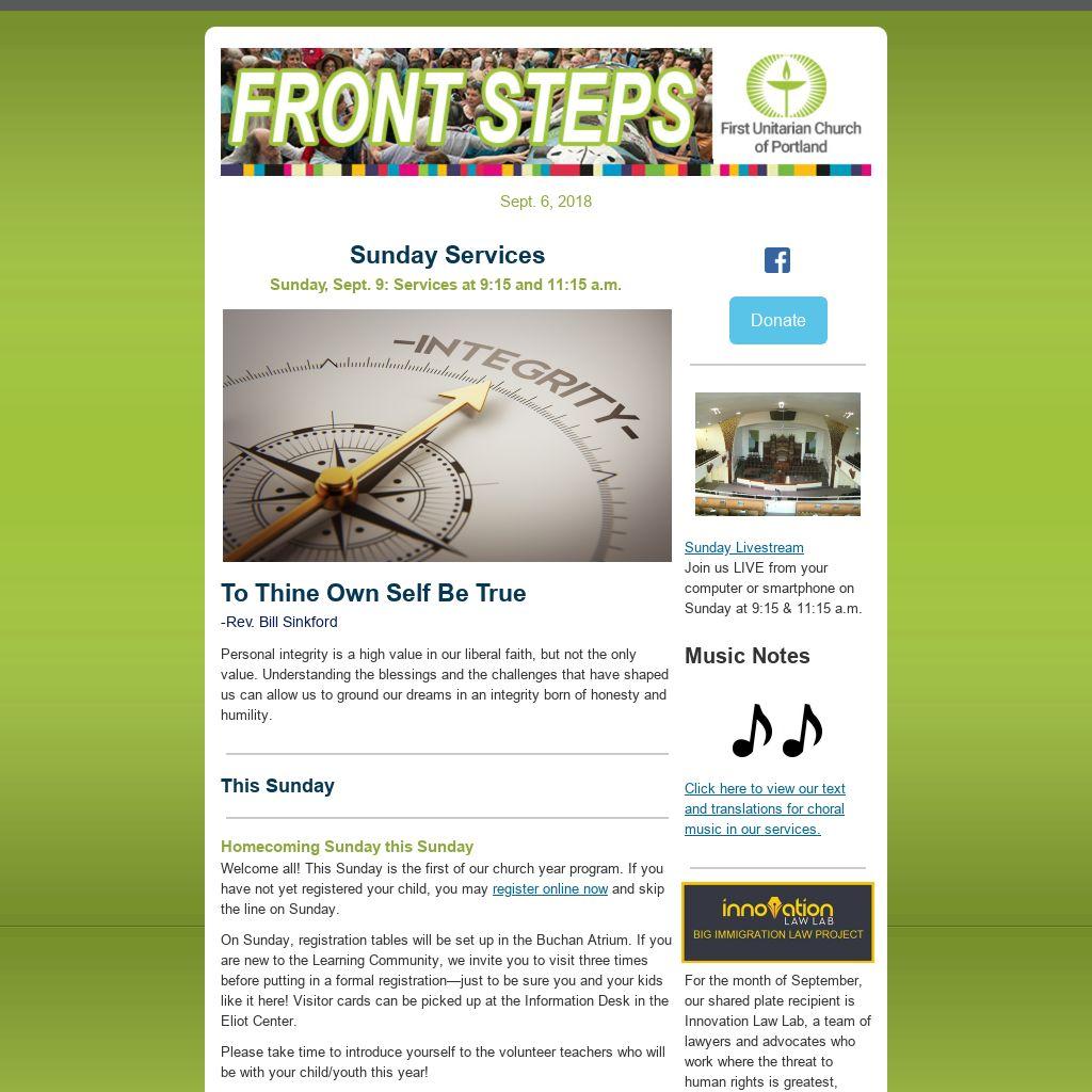 Do You Have an Item for E-news and/or the Sunday Bulletin?If you have an item you’d like published in our weekly Front Steps (eNews) or the Sunday Bulletin, please submit it to:
