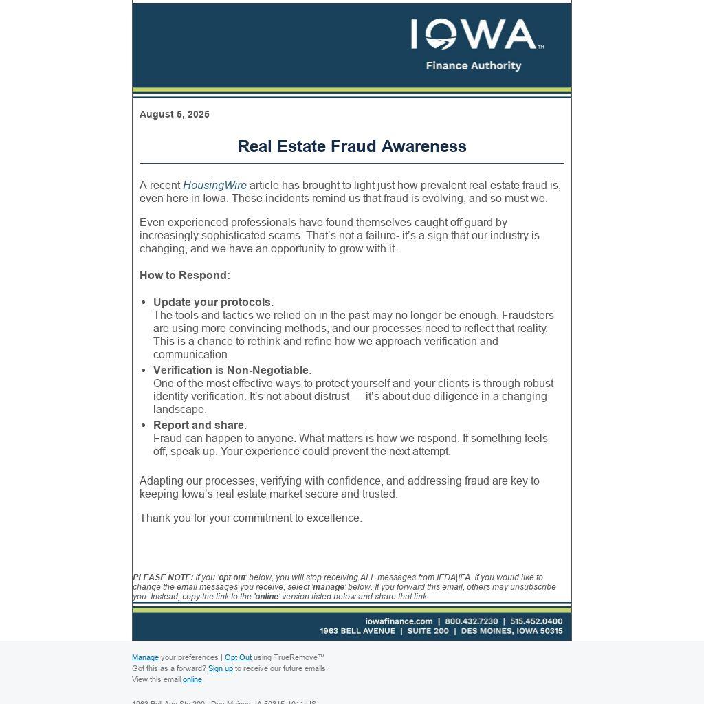 Adapting our processes, verifying with confidence, and addressing fraud are key to keeping Iowa’s real estate market secure and trusted.