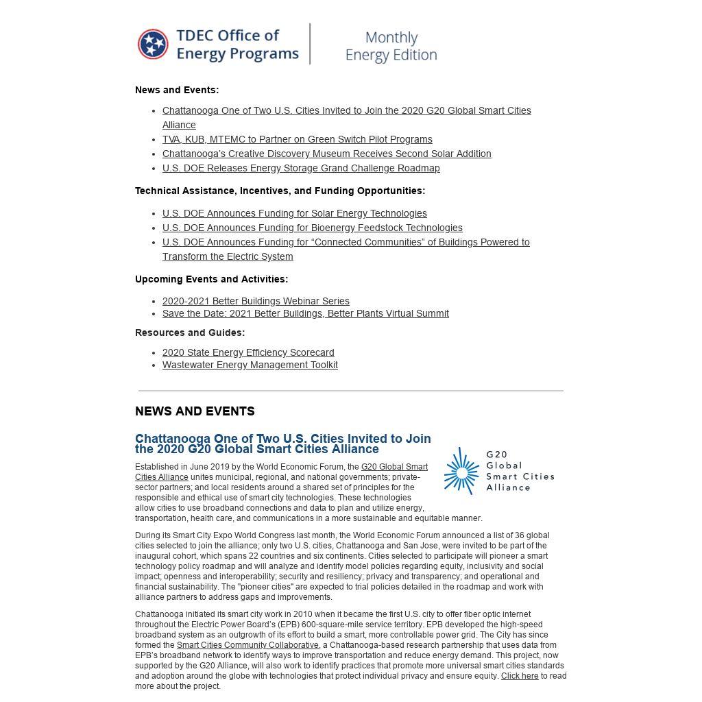 | Chattanooga One of Two U.S. Cities Invited to Join the 2020 G20 Global Smart Cities Alliance