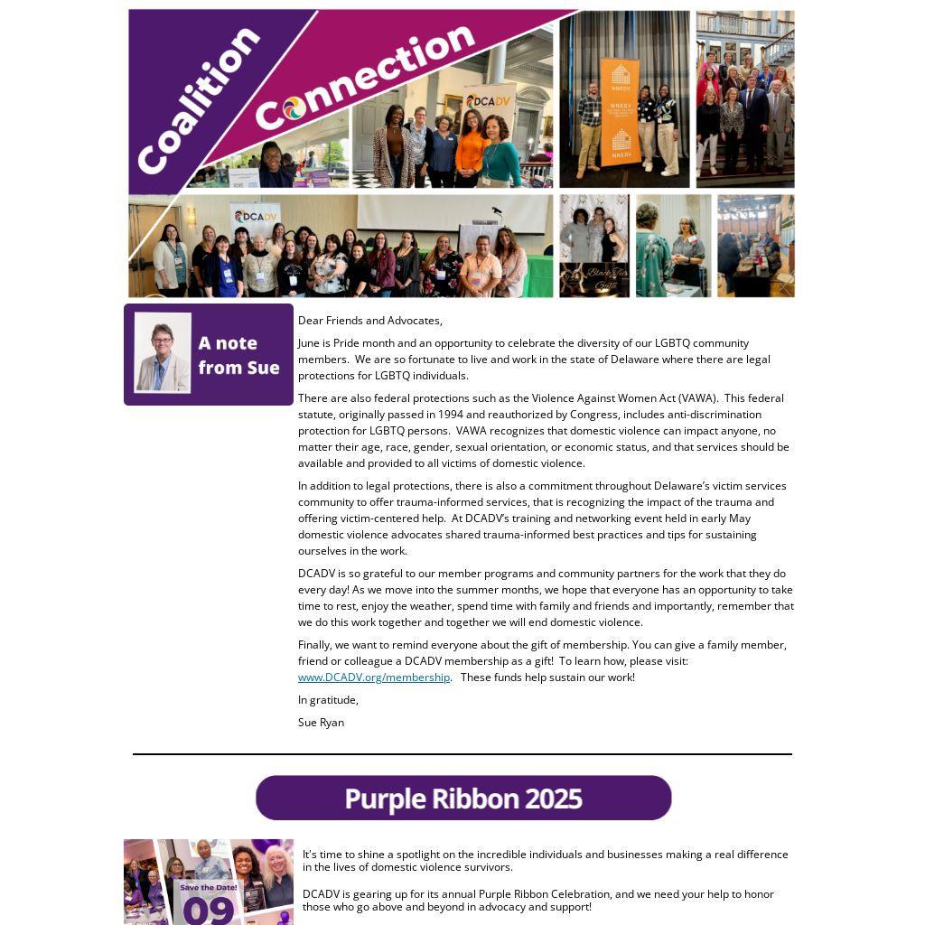 Finally, we want to remind everyone about the gift of membership. You can give a family member, friend or colleague a DCADV membership as a gift! To learn how, please visit: www.DCADV.org/membership. These funds help sustain our work!
