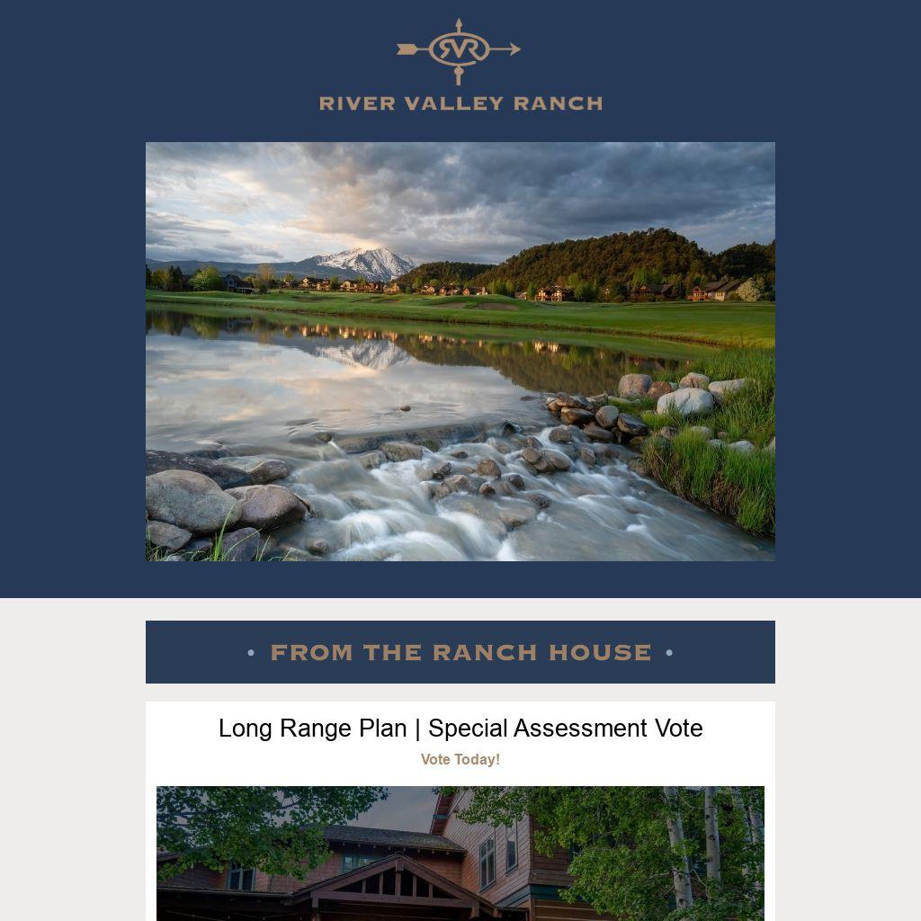 governance@rvrma.org on Wednesday, Feb. 7 concerning the Long Range Plan and the associated special assessment. The deadline to cast your vote is May 7. If you haven't received your ballot please be sure to check your junk folder. Contact General Manager, Ashley Lynch at