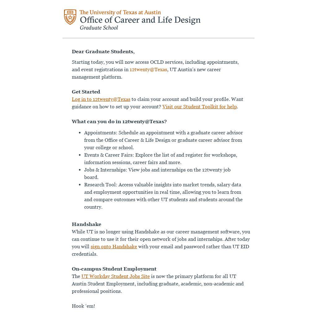 - Jobs & Internships: View jobs and internships on the 12twenty job board.