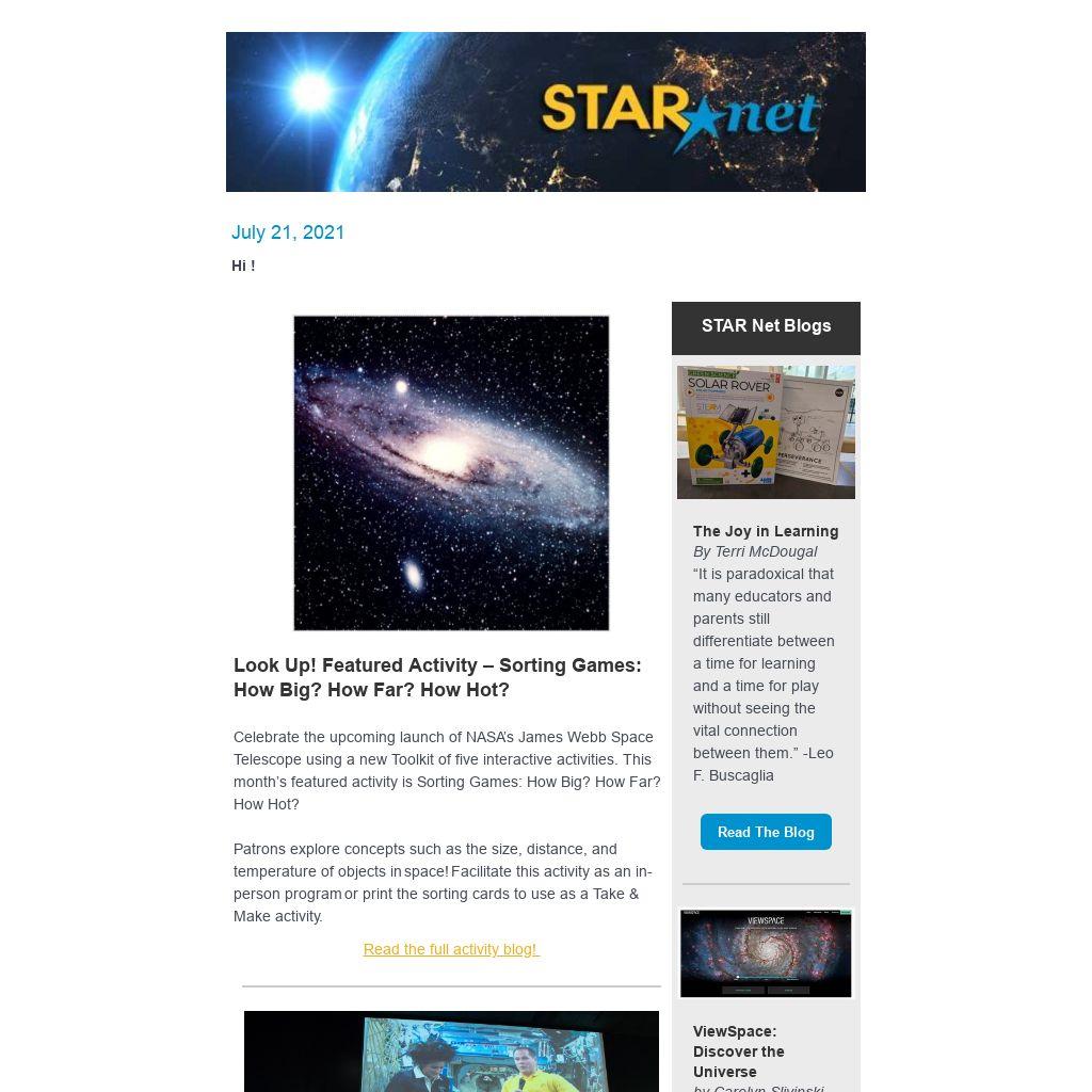 Come check out all the fun ways you can include SciGames into your programming! Included are free apps for patrons to download, games to play on a tablet, computer, or smartphone, plus tons of STEM related questions to test their knowledge. From coding a rover to creating your own solar system, each game is a fun learning experience for all ages.