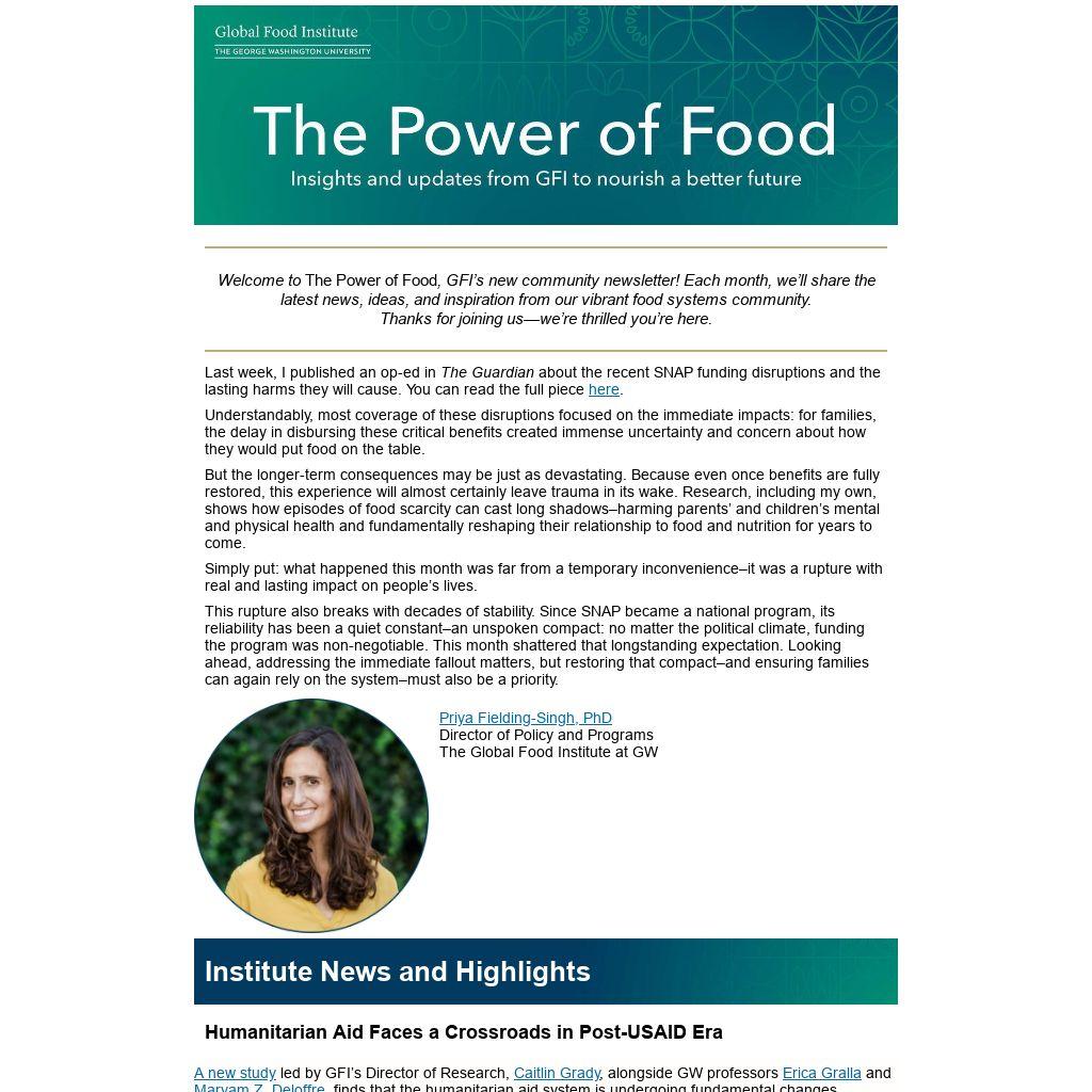 We want to lift up your work and share information about events, opportunities to collaborate or whatever you think is important to share. Email us at globalfoodinstitute@gwu.edu.